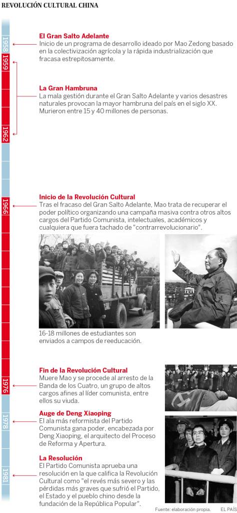 La reacció de Mao al fracàs del Gran Salt Endavant serà impulsar la Revolució Cultural (1966-1976), un procés de radicalització en el qual es va voler transformar la societat xinesa a la força: deportacions de persones de la ciutat a zones agrícoles, “reeducació” de persones no afectes al règim… La “Guàrdia Roja” va ser el cos encarregat d’instaurar aquest règim de por. El resultat, mil·lions de deportats a la força, dos mil·lions de morts i un trauma no digerit encara avui per la societat xinesa.