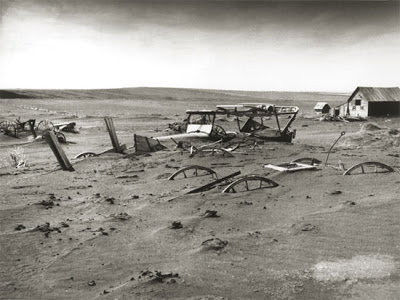 En un context de fallida financera i depressió econòmica, una sèrie de sequeres varen arrassar els cultius del centre de Estats Units. Les tempestes de pols varen acabar per arruïnar els pagesos, molts dels quals s’havien instal·lat allí en temps de la frontera, com a colons.