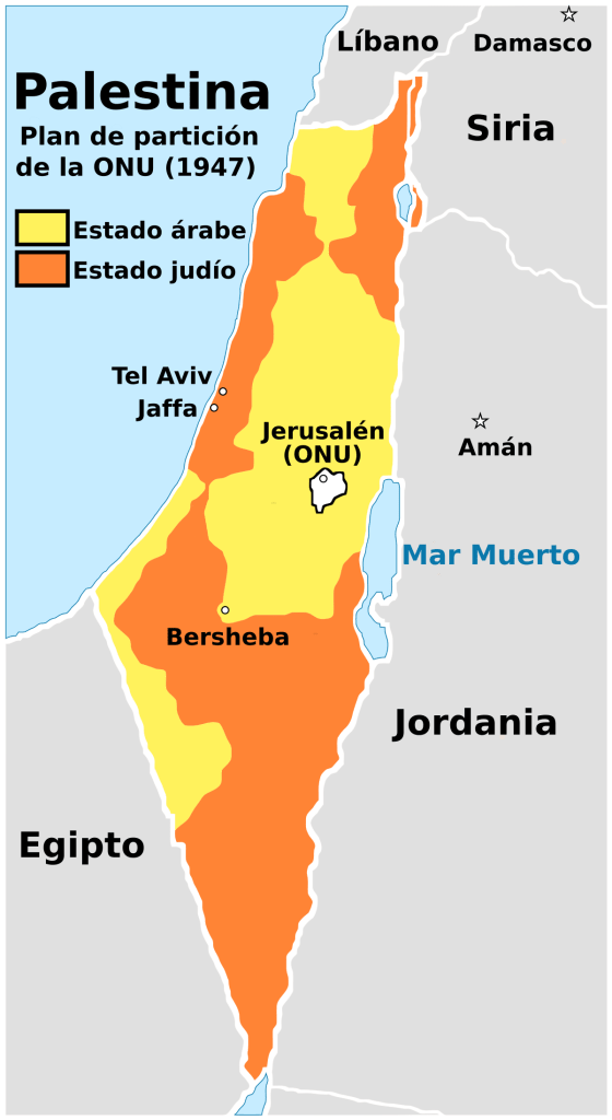 Vídeo resum de tot aquest embull. Atenció que hi ha referències a un exercici que fareu més tard…Fracassat pla de la ONU de 1947 de crear dos estats, l’Israelià i el Palestí. L’any 1949 Israel va proclamar la independència a tot el territori, al marge de la ONU, impossibilitant la creació d’un estat palestí. Es va iniciar la primera guerra àrab-israelí.Un kibbutz, una explotació agrícola israeliana de gestió col·lectivitzada, de tipus socialista, que va servir per cultivar terres abans desèrtiques.